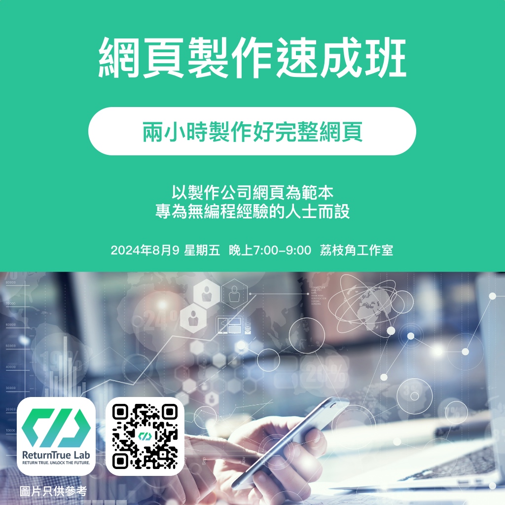 想為公司或產品製作一個簡單而美觀的網頁?但擔心預算不足,又缺乏專業技能?是次工作坊特別為沒有網頁製作基礎的人士而設,我們將在兩小時內帶領參與者完成一個公司網頁,掌握網頁製作技巧,課後亦能輕鬆製作各類簡單資訊網頁!